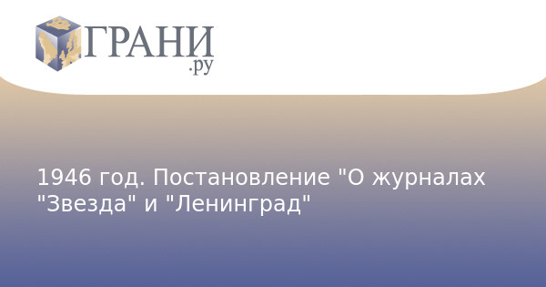 1946 год. Постановление "О журналах "Звезда" и "Ленинград"