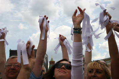 Прогулки с белыми лентами у Кремля становятся новой еженедельной оппозиционной традицией. По словам Надежды Митюшкиной, всего прошло уже шесть подобных прогулок у Кремля, четыре из которых закончились задержаниями.
